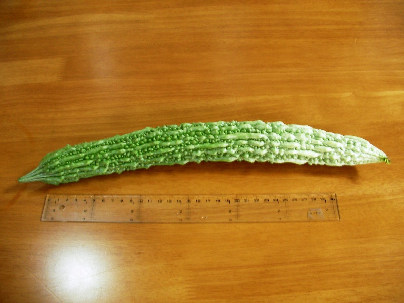 ゴーヤは、これが35センチくらいで、その後40センチを超える大物も収穫しました。先週に土曜、庭で焼肉をしたのですが、なってたゴーヤを採って輪切りにし、種だけ出してアルミホイルに包んで蒸し焼きにしたんですが、おいしかったです。ゴーヤ好きにはたまらない、ゴーヤ嫌いには耐えられないくらいの苦味でしたけど(笑)。