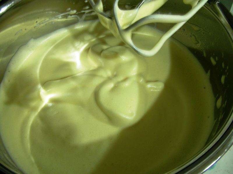 ※ハンドミキサーで5分少々、というところでしょうか。「の」の字を書いても消えないくらいの状態です。