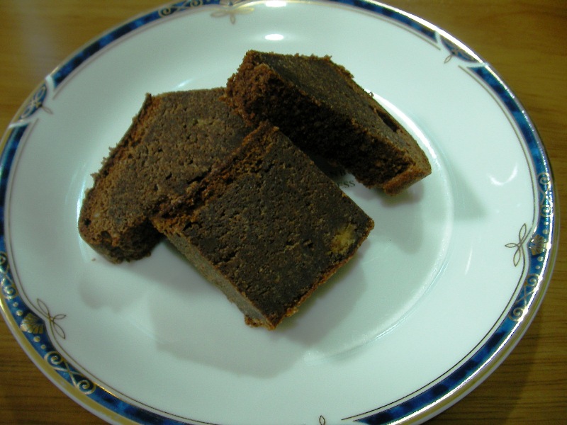 見た目は真っ黒でかなり濃厚な感じですが、色の半分はココアによるものなのと、生クリームを使っていないこと、粉類の大半をアーモンドに切り替えたおかげで、濃いけどあっさり、という不思議なケーキが出来上がりました。