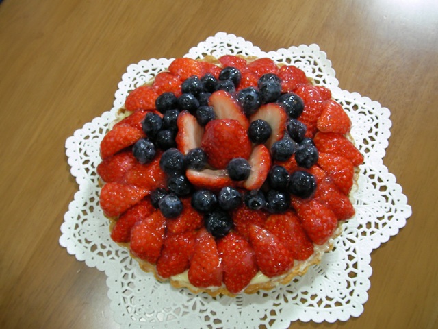 とりあえず、子どもたちの評価は上々。味も、タルトはバターを使わずサラダ油を使うことで軽い感じに仕上げ、カスタードは砂糖を極限まで抑えたのでフルーツの甘みで食べる感じなり、18センチのタルトが5分でこの世から消え去りました。